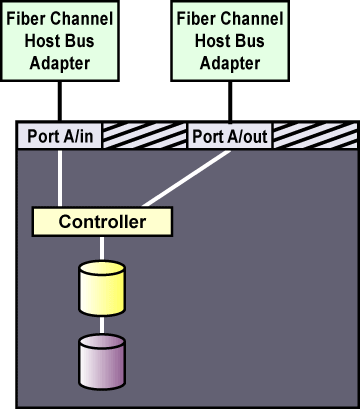 A single-initiator Fibre Channel interconnect has only one member connected to it. This may provide better host isolation and better performance than a multi-initiator bus. Single-initiator interconnects ensure that each member is protected from disruptions due to the workload, initialization, or repair of the other member.