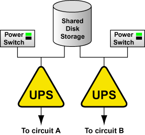 It is not recommended to use a single UPS infrastructure as the sole source of power for the cluster. A UPS solution dedicated to the cluster is more flexible in terms of manageability and availability.