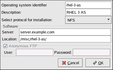 Operating system identifier — Provide a unique name using one word to identify the Red Hat Enterprise Linux version and variant. It is used as the directory name in the /tftpboot/linux-install/ directory.
