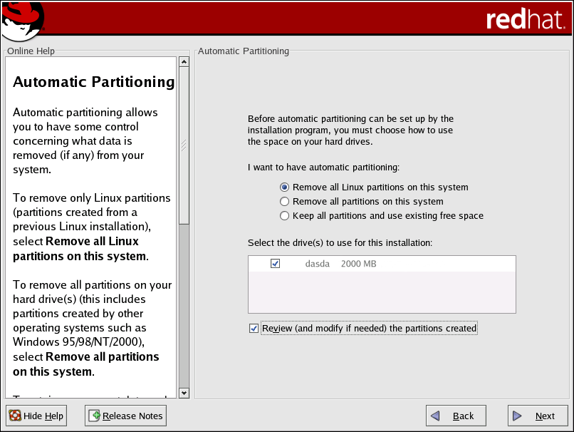 Automatic partitioning allows you to have some control concerning what data is removed (if any) from your system. Your options are: