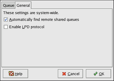 The General tab configures settings for all printers, including those not viewable with the Printer Configuration Tool. There are two options: